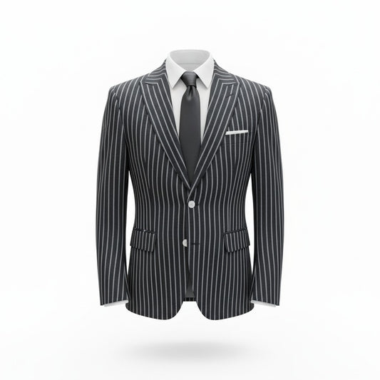 COSTUM BARBATI Negru cu dungi albe inguste