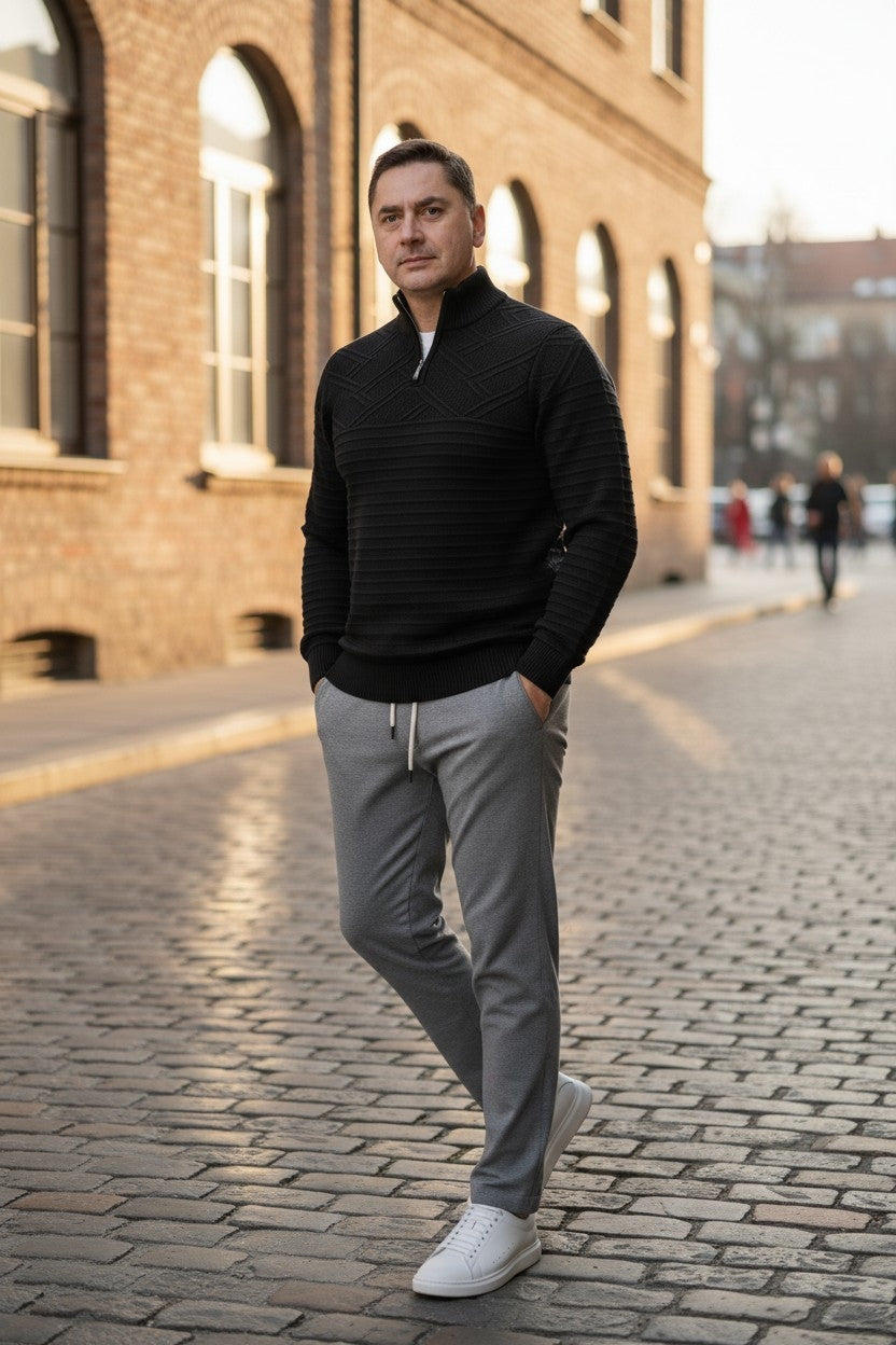 COSTUM BARBATI negru cu dunga alba lata