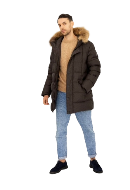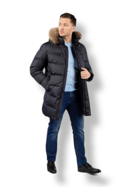 GEACA BARBATI din puf natural.Gluga cu blana de raton