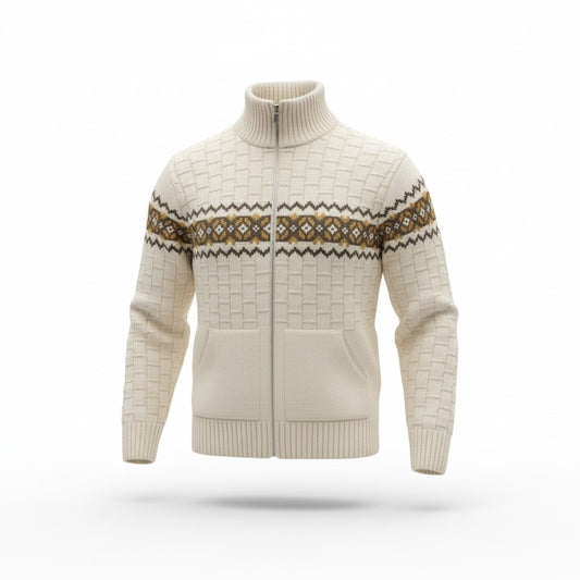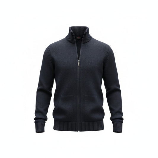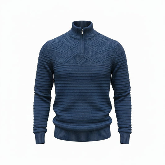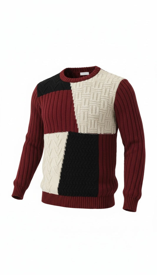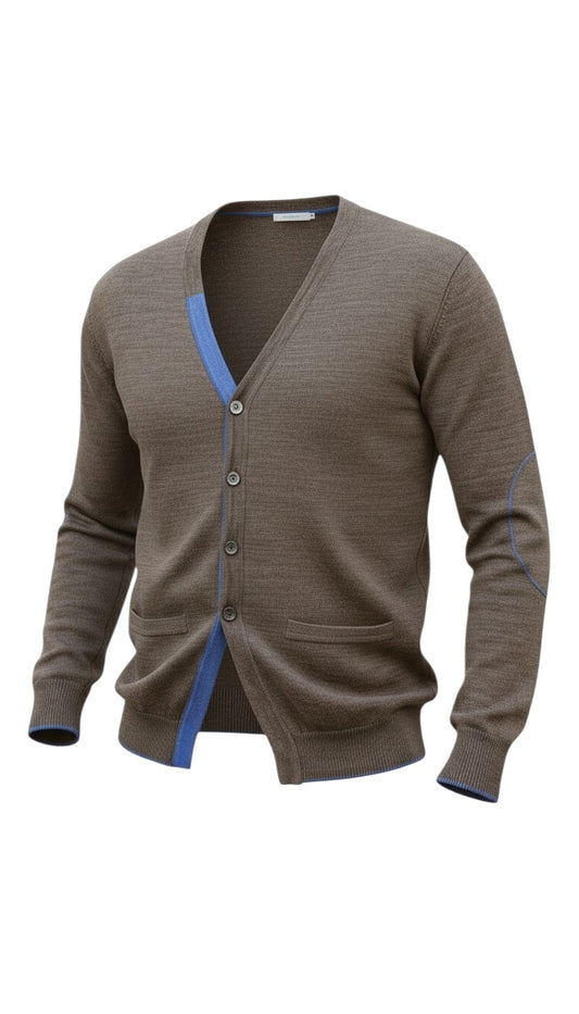 Pulover cu nasturi maro cu albastru regal din lana si acril